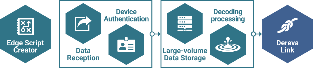 「Dereva DataStream」は、現場デバイスからGateway経由で収集したデータをクラウド受付から活用できる形で変換・保管するために、エッジスクリプト開発ツールをセットしております。